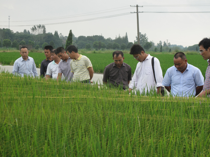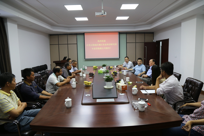 2015年9月5日,應公司邀請,江蘇丘陵地區鎮江農業科學研究所知名水稻育種家盛生蘭研究員與其團隊龔紅兵主任、景德道等一行蒞臨公司,就雙方開展科企合作、定向育種等工作進行了研討。盛老師一行首先仔細考察公司銅井水稻育種基地,之后就田間考察情況及雙方合作事宜進行了深入交流和探討,并形成共識。