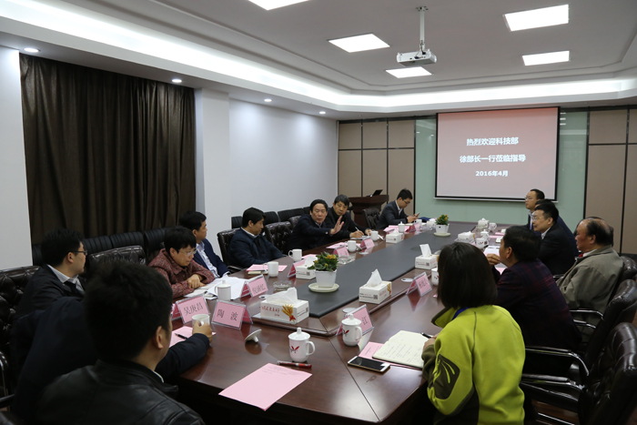 4月5日上午,國家科技部副部長徐南平在江蘇省科技廳廳長王秦、辦公室主任羅揚、農村處處長陳洪強、高新處處長倪涵憶、省政府辦公廳吳庚昌、南京市科委副主任劉小斌、城鄉處處長陶波等人的陪同下,蒞臨我公司對企業科技工作進行調研并召開專題座談會。公司總經理嚴輝民、副總楊地龍、胡玉成、首席育種家鄒江石、研發總監王波以及董事會秘書徐江等人參加了本次會議。