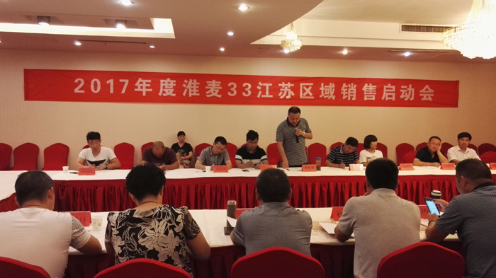 7月8日-9日,2017年度淮麥33江蘇銷售啟動會在江蘇沭陽順利召開。本次會議由蘇北片區各縣代理商參加,會議議題包括市場形勢分析、銷售政策、市場管控、二維碼技術培訓、經銷商研討等,會議由常規稻麥部副部長韓國標主持。