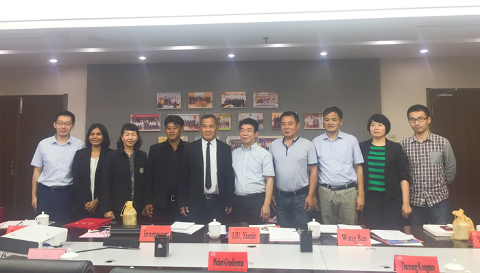 2017年9月11日上午,泰國農(nóng)業(yè)部大田與可再生能源作物研究所所長Mr. Pichet Grudloyma率領(lǐng)種子研究發(fā)展所、大田作物中心、油棕研究中心的專家代表團(tuán)一行4人來南京考察交流。泰國農(nóng)業(yè)部代表團(tuán)和江蘇省農(nóng)業(yè)科學(xué)院副院長劉賢金、國際合作處副處長王冉,以及江蘇明天種業(yè)外貿(mào)經(jīng)理仲勇坤等在院綜合樓會議室舉行座談會,會議由王冉副處長主持。