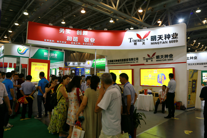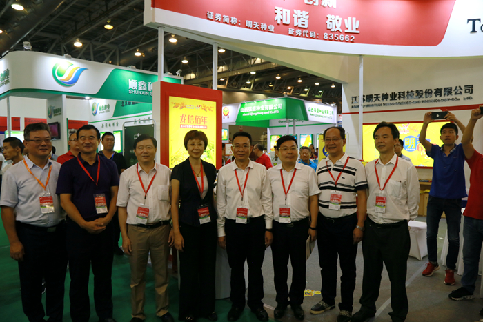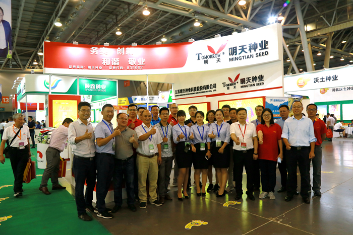 916日,由全國農業技術推廣服務中心、農業農村部農業貿易促進中心、中國種子協會、安徽省農業委員會主辦的第十一屆中國國際種業博覽會與第十六屆全國種子信息交流暨產品交易會在安徽合肥國際會展中心開幕。此次展會吸引了許多國內知名種子企業參展,迎來上萬名農業行業管理者、經營者、消費者參觀交流。江蘇、安徽市場是公司經營品種全覆蓋區域,為展示公司近年來科研成果及新品種,明天種業以特展形式亮相本次會議。          嚴輝民總經理攜公司相關人員參加了會議,并出席了雙交會開幕式。        明天種業攜主推品種明天695、明科玉77、深兩優862、和兩優713、淮麥33、寧麥13、明麥133等優質新品種亮相雙交會。         全國農技中心主任劉天金、全國農技中心副書記劉信、農業農村部種業管理司副司長吳曉玲、江蘇省種業協會會長張堅勇、安徽省種子管理站站長熊成國、江蘇省種子管理站副站長陳國斌、江蘇省種業協會秘書長蔣紅云與公司總經理嚴輝民在展位合影。