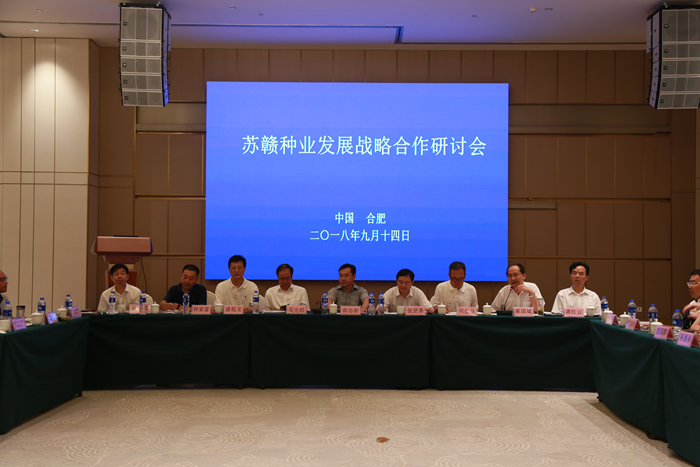 同時,在本次雙交會期間,由江蘇省種業協會主辦,江蘇明天種業科技股份有限公司、江蘇中江種業股份有限公司承辦的蘇贛種業發展戰略合作研討會在合肥方萊國際大酒店召開,來自江蘇省種子管理系統、江蘇省種業企業、江西省種子管理系統、江西省種子企業及相關新聞媒體等110余人參加了本次研討會。中國種子協會副會長兼秘書長蔣協新、中國種子協會副會長鄧光聯、江蘇省種業協會會長張堅勇、江蘇省種子管理站站長何金龍、江西省種子管理站站長盛根龍等領導出席了本次會議。