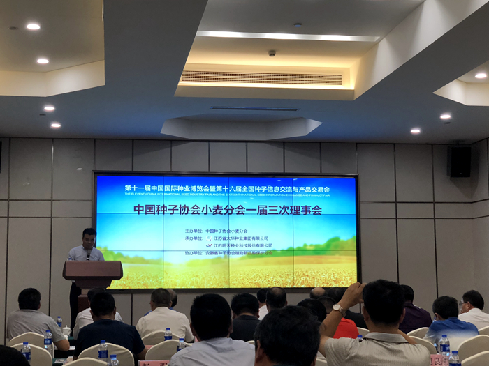 由中國種子協會小麥分會主辦,江蘇省大華種業集團有限公司、江蘇明天種業科技股份有限公司承辦的小麥分會一屆理事會也同期在合肥舉行,全國農技推廣中心副處長邱軍主持會議。中國種子協會顧問組長李立秋、農業農村部科技發展中心處長崔野韓、河南科技學院小麥中心教授茹振鋼、安徽省種子管理總站副站長汪社寬、江蘇明天種業科技股份有限公司副總經理胡玉成、安徽省種子協會副秘書長葉飛、江蘇省大華種業集團有限公司副總經理周義東等出席大會并發表講話,就只是產權保護、育種創新、維權打假等方面展開分析。