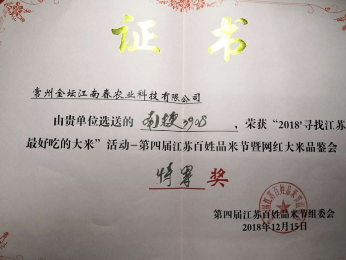 2.優(yōu)質(zhì)食味早熟晚粳新品種“南粳3908”獲稱(chēng)“江蘇優(yōu)良食味稻米品種”。